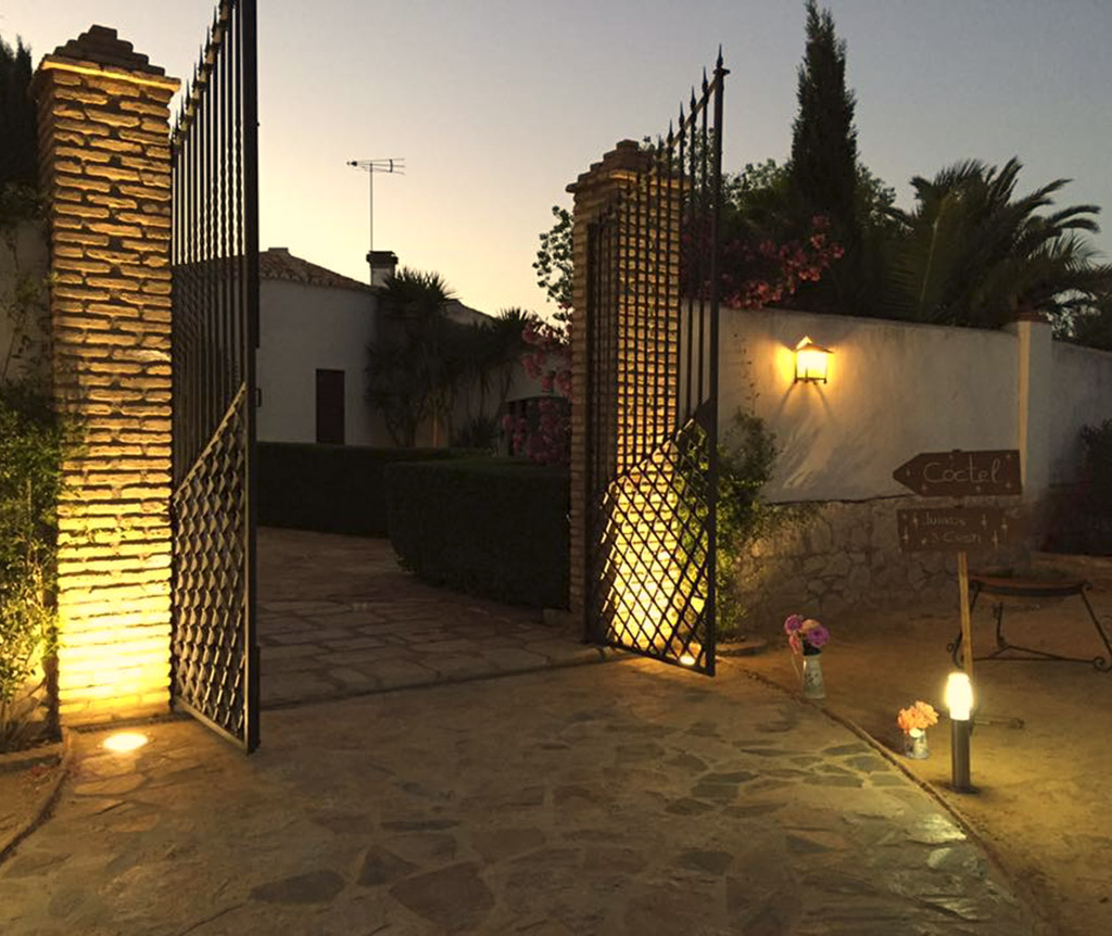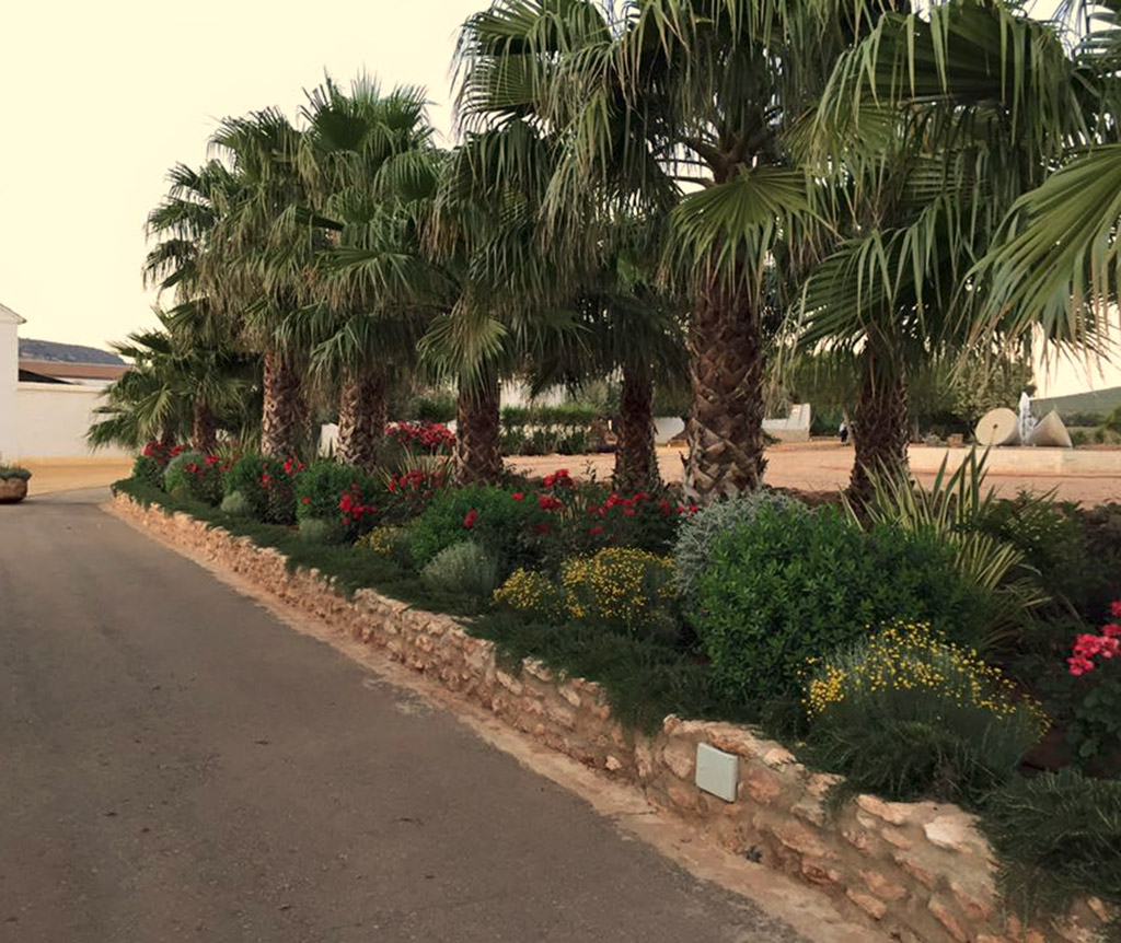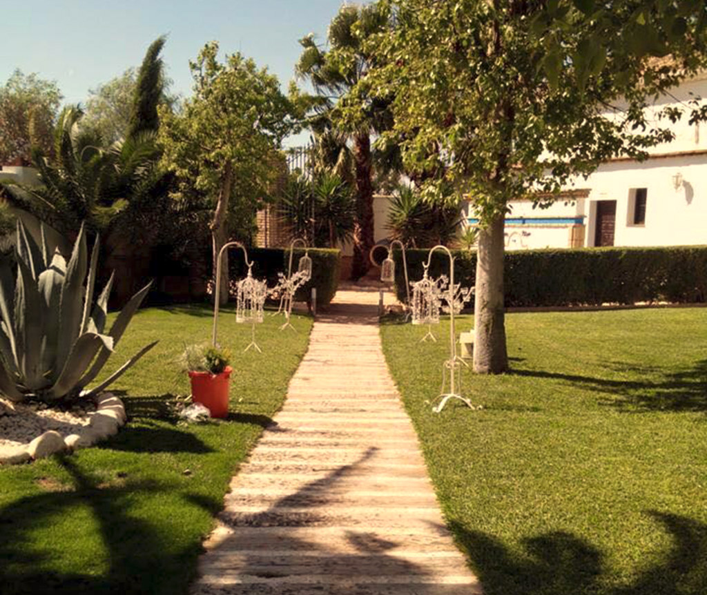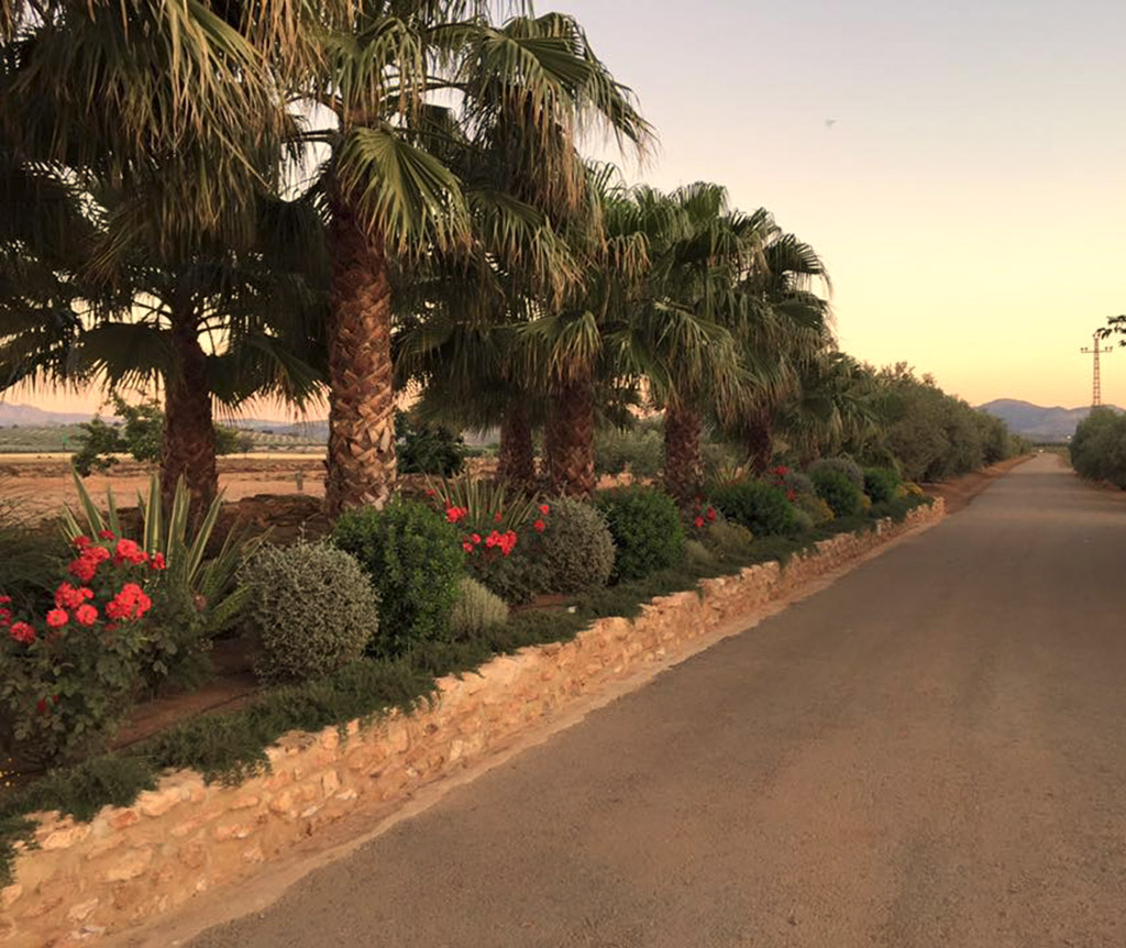 Desde la Carretera Nacional N-340, accedemos a la Hacienda a través de un camino asfaltado que nos permite llegar cómodamente hasta un amplio aparcamiento, también asfaltado, desde el que se accede al edificio principal a través de palmeras y rosales.