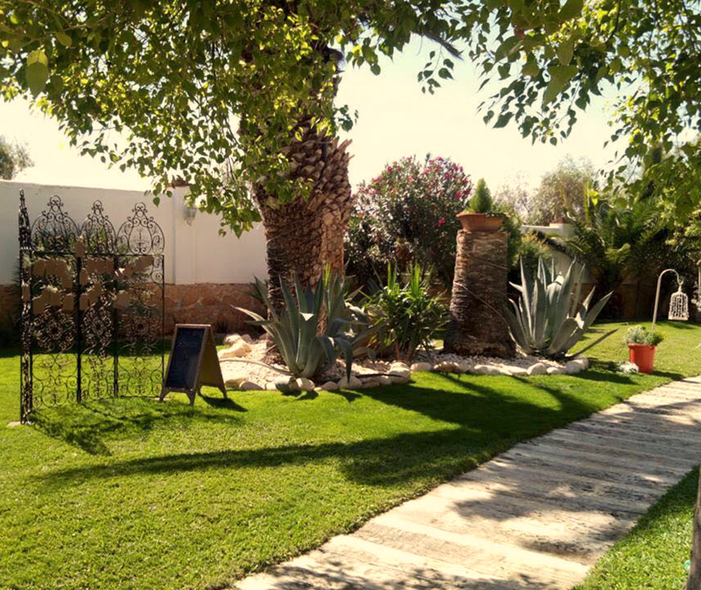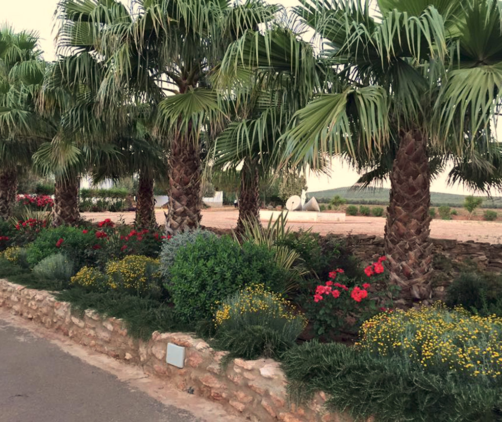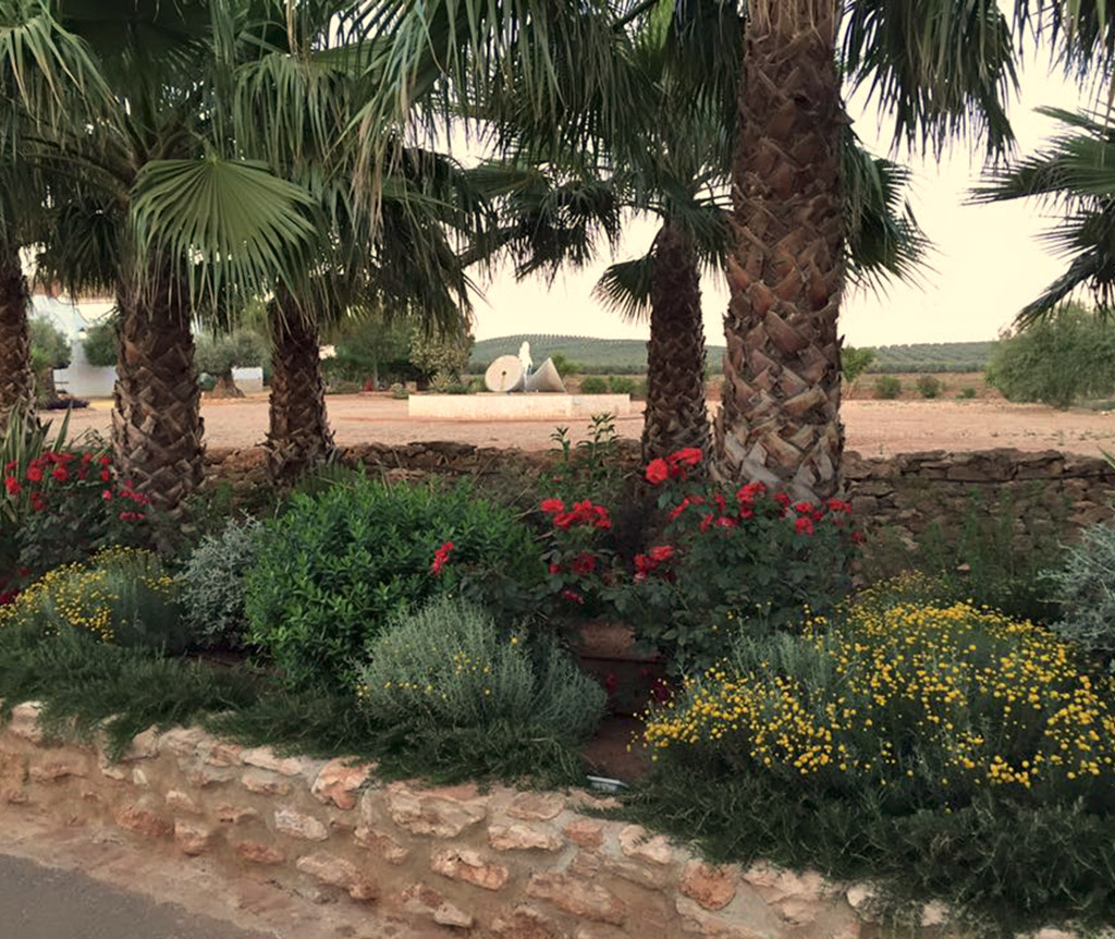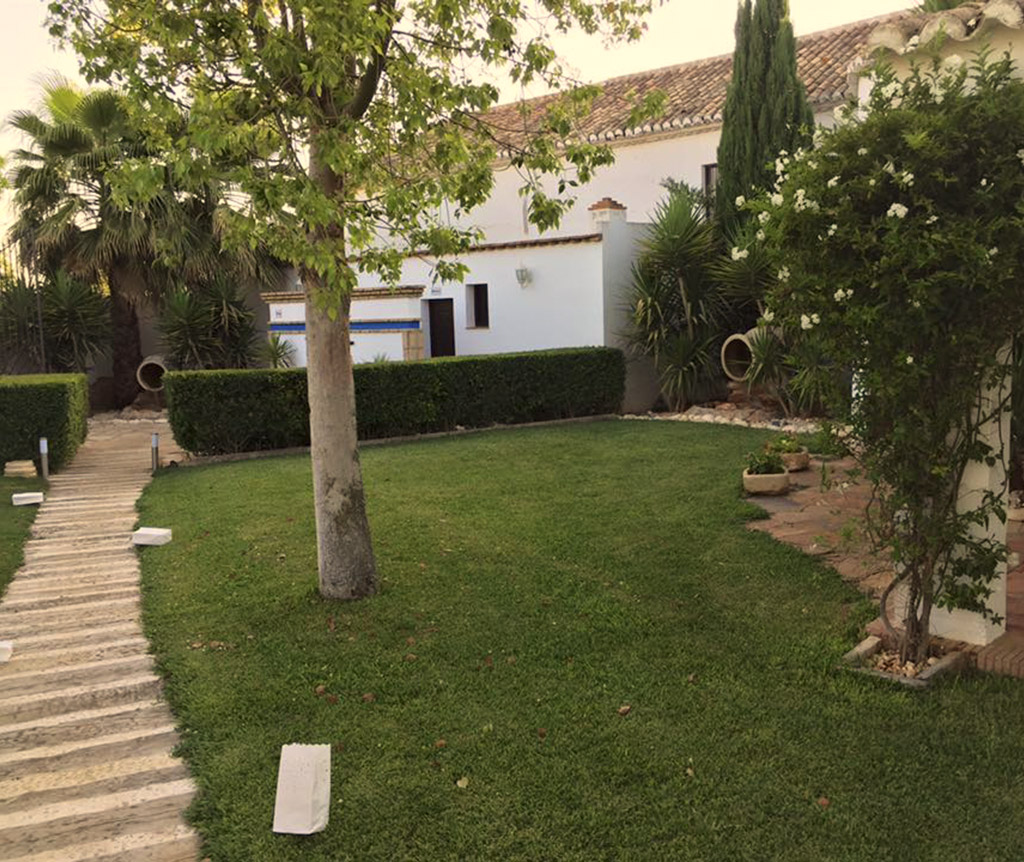 Desde la Carretera Nacional N-340, accedemos a la Hacienda a través de un camino asfaltado que nos permite llegar cómodamente hasta un amplio aparcamiento, también asfaltado, desde el que se accede al edificio principal a través de palmeras y rosales.